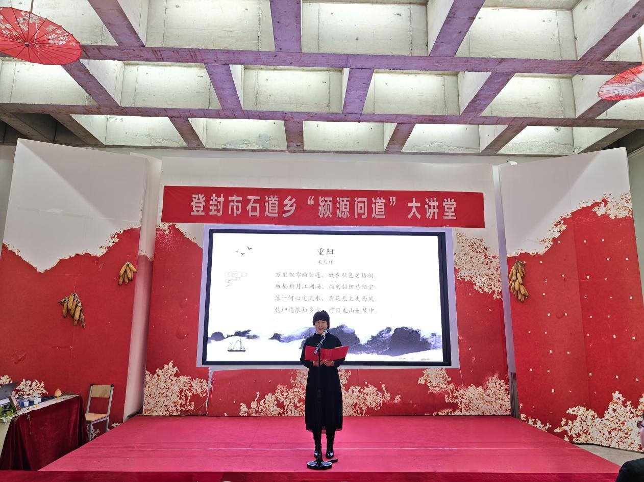 金秋送爽,菊韵飘香。10月29日,登封市石道乡和登封市作家协会以“菊颂秋光,诗传古韵”为主题,联袂举办重阳诗会暨“颍源问道大讲堂”第五期活动,通过“文化+学习”深度融合的形式,为基层干部带来一场内涵丰富、形式生动的精神文化盛宴。