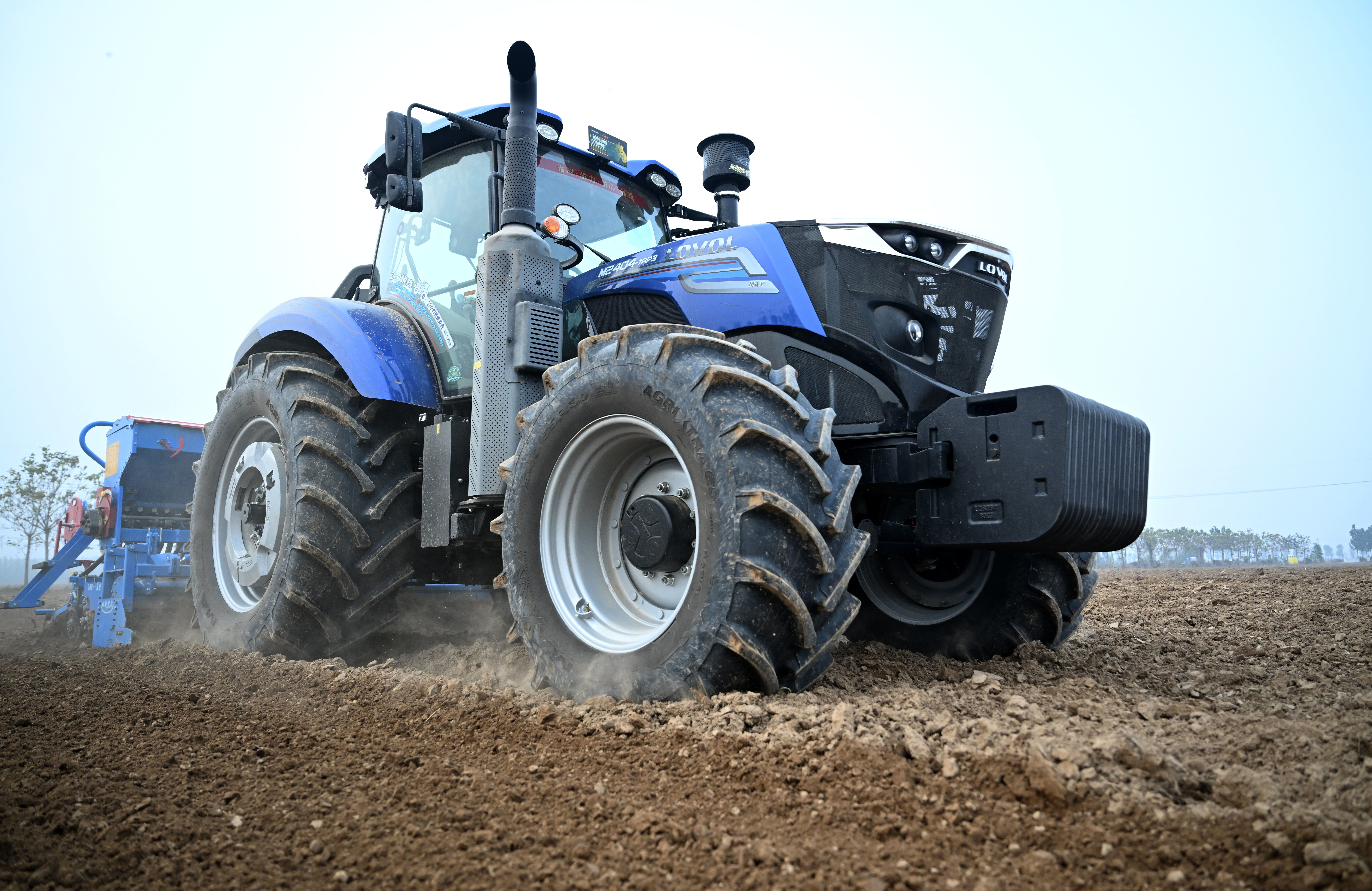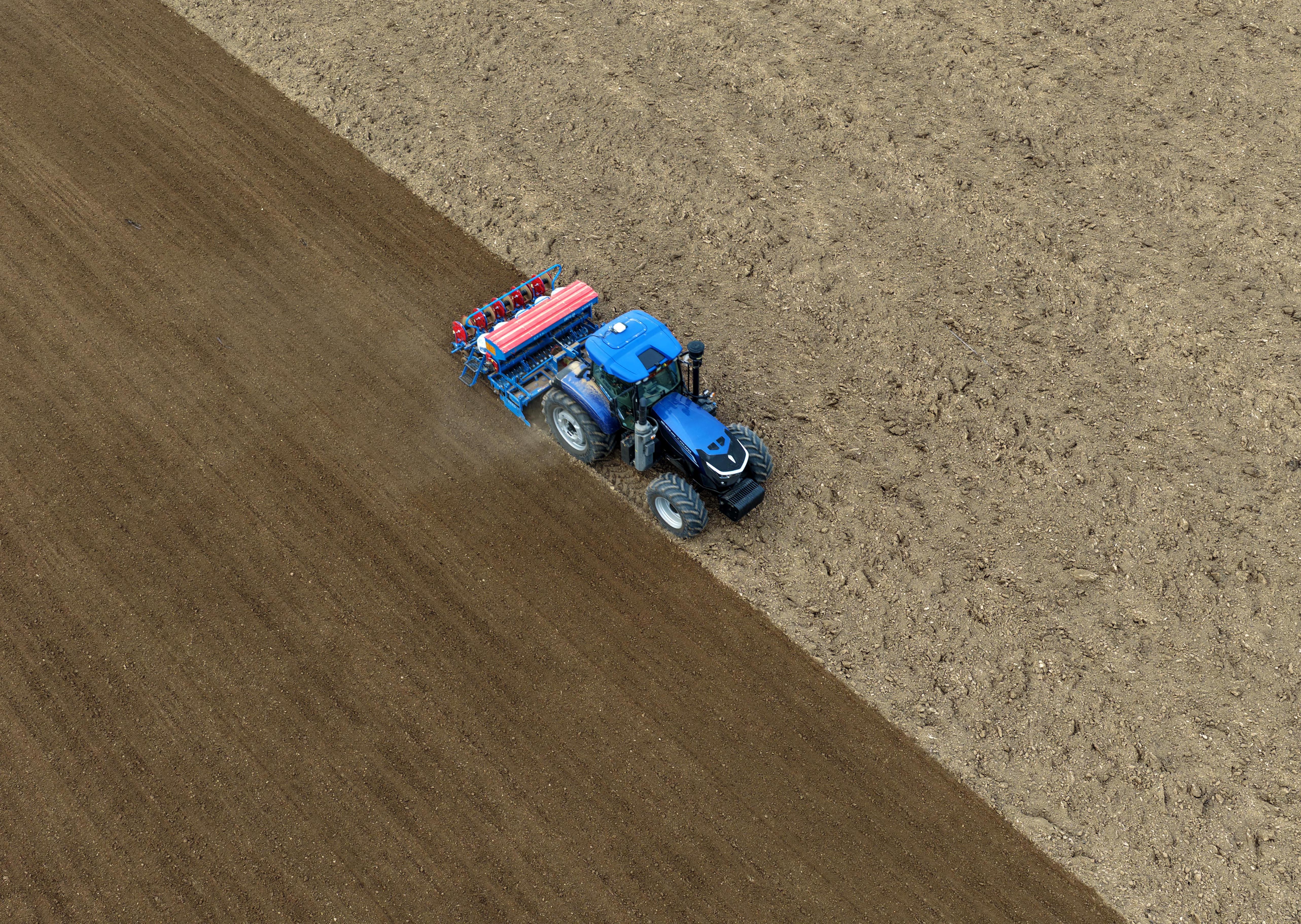 10月30日,在河南省清丰县固城镇张庄里村,无人驾驶拖拉机在进行旋耕播种复合作业。新华社记者 李嘉南 摄