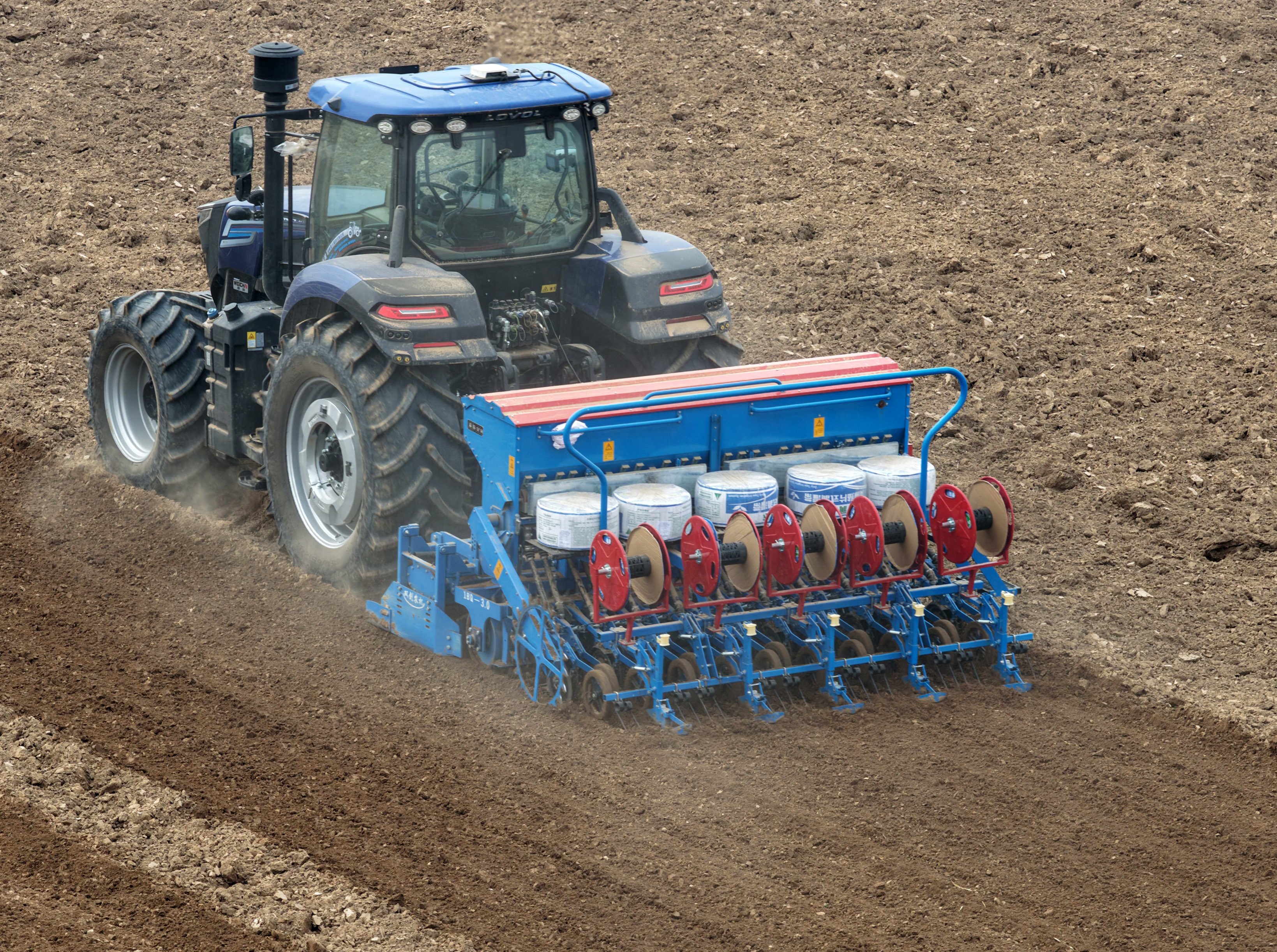 近日,河南省“三秋”工作正在转入腾茬整地和小麦播种阶段,不少地方抢抓农时,加紧播种冬小麦,无人机、无人驾驶拖拉机等新型农机在田间“大显身手”,新农人们用科技赋能农业生产,助力秋播。