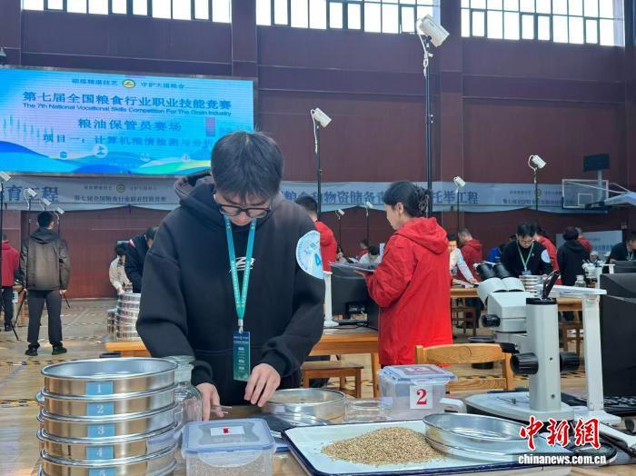 11月4日,第七届全国粮食行业职业技能竞赛在河南郑州开幕。34支代表队的354名选手围绕粮油保管员、粮油质量检验员两个工种7个项目进行技能角逐。图为第七届全国粮食行业职业技能竞赛现场。王佳宁 摄