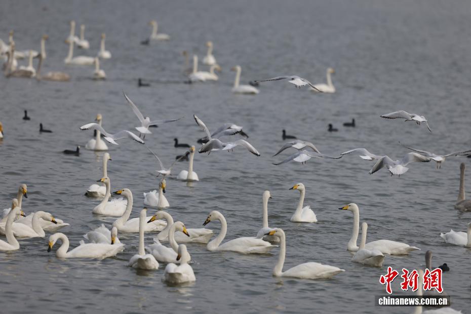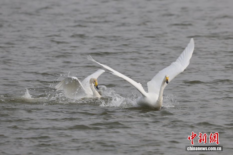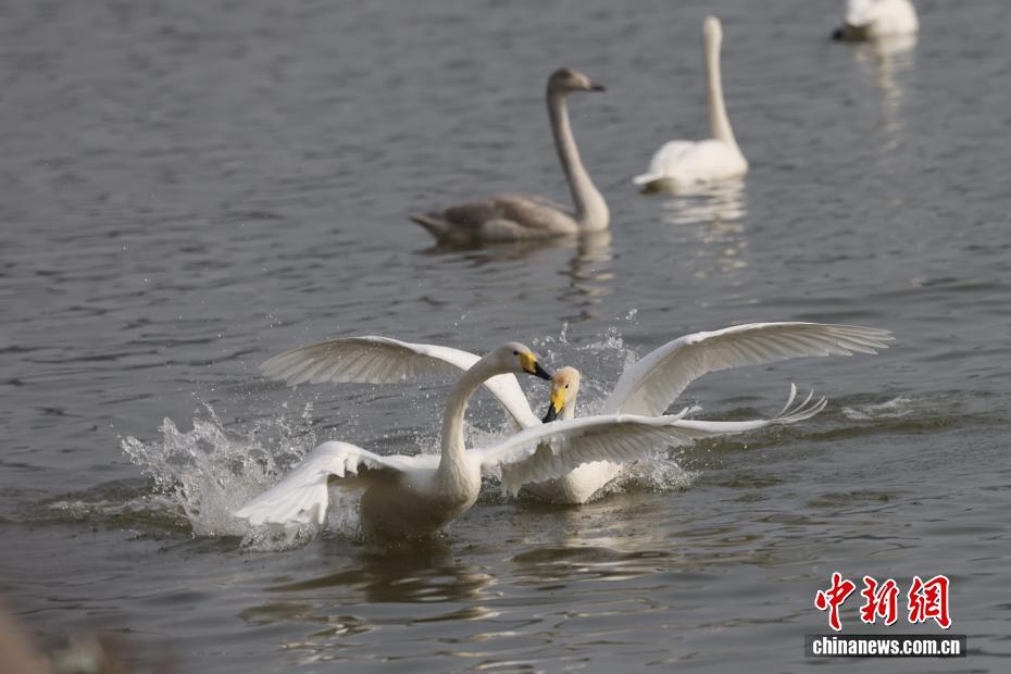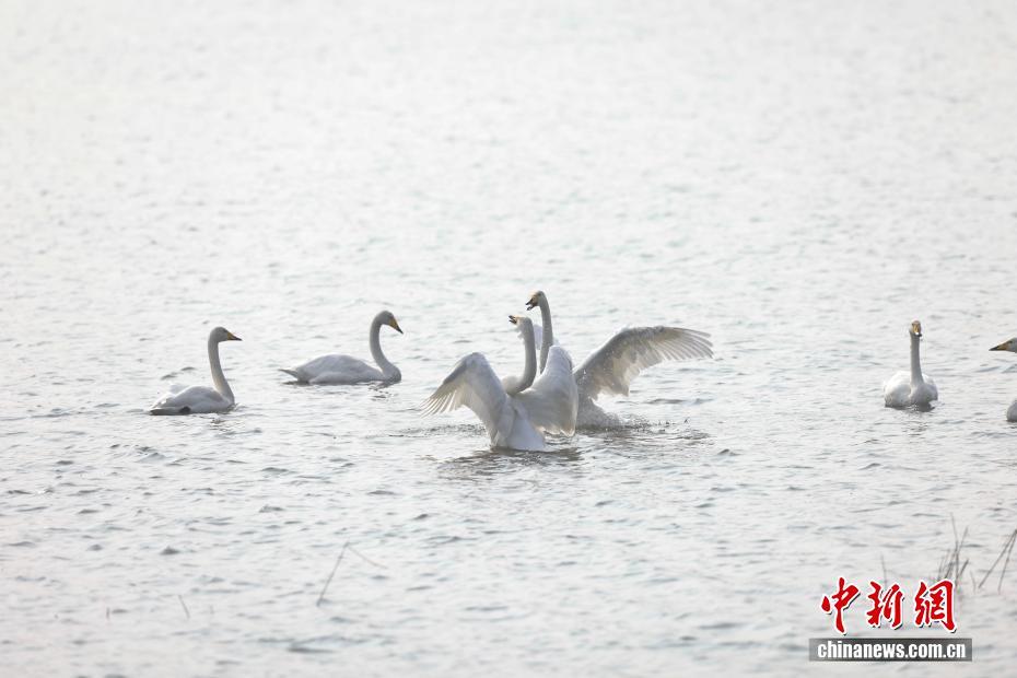 11月4日,河南省三门峡市天鹅湖国家城市湿地公园,2000余只大天鹅在黄河湿地游弋飞翔、翩跹起舞。每年10月中旬至次年3月,有1万多只来自蒙古国和西伯利亚的大天鹅千里迁徙,在三门峡浅滩湿地内越冬。张明云 摄