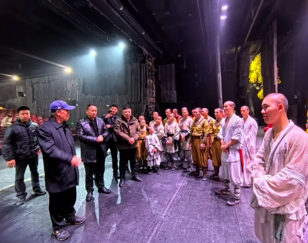 下午,文忠民一行又兴致勃勃的来到功夫剧场,欣赏由少林小龙武校学员参与演出的大型室内功夫剧《功夫天下秀》的经典演艺,并亲切地向演职人员表示慰问、合影留念。