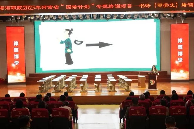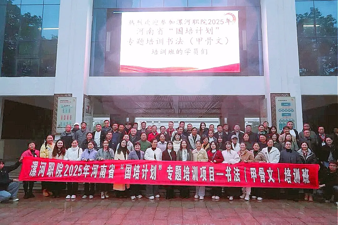 11月6日,2025年河南省“国培计划”书法(甲骨文)专题培训第二期现场研修活动在漯河市源汇区许慎小学开展。本次活动由河南省教育厅主办,漯河职业技术学院承办,吸引了来自全省各地的百余名骨干教师再聚许慎小学,共同推进汉字文化在基础教育阶段的传承与创新。