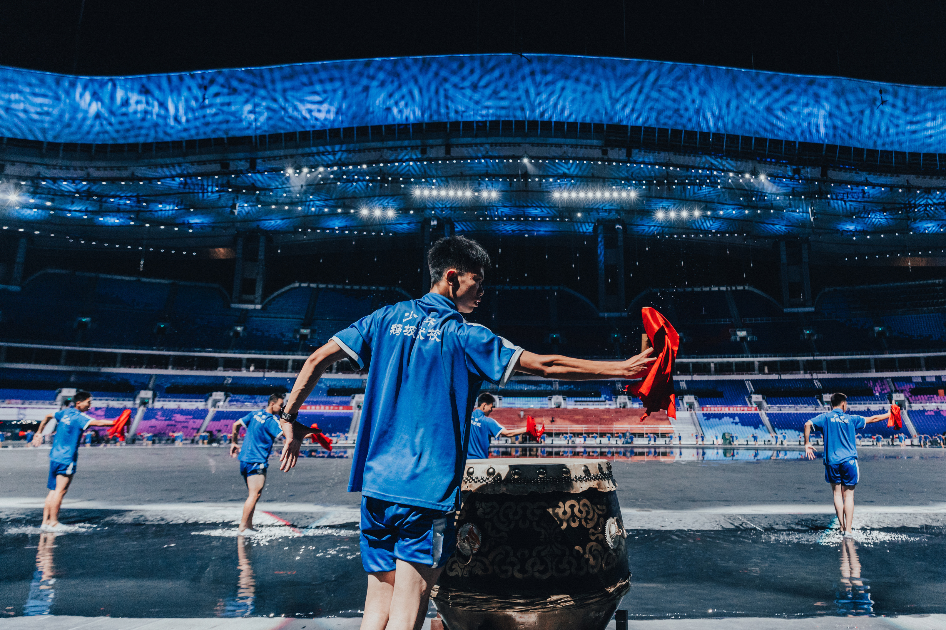 与此同时,近两千名飞鸿学生以磅礴阵列铺满整个舞台,彩旗翻飞间,呐喊声与水光、棍影、鼓声交织成一幅气势恢宏的中华武术长卷,将现场气氛持续推向高潮,让观众沉浸式领略中华武术的独特魅力,更从飞鸿学生们的身上,看到中华武术薪火相传、生生不息的蓬勃生机。