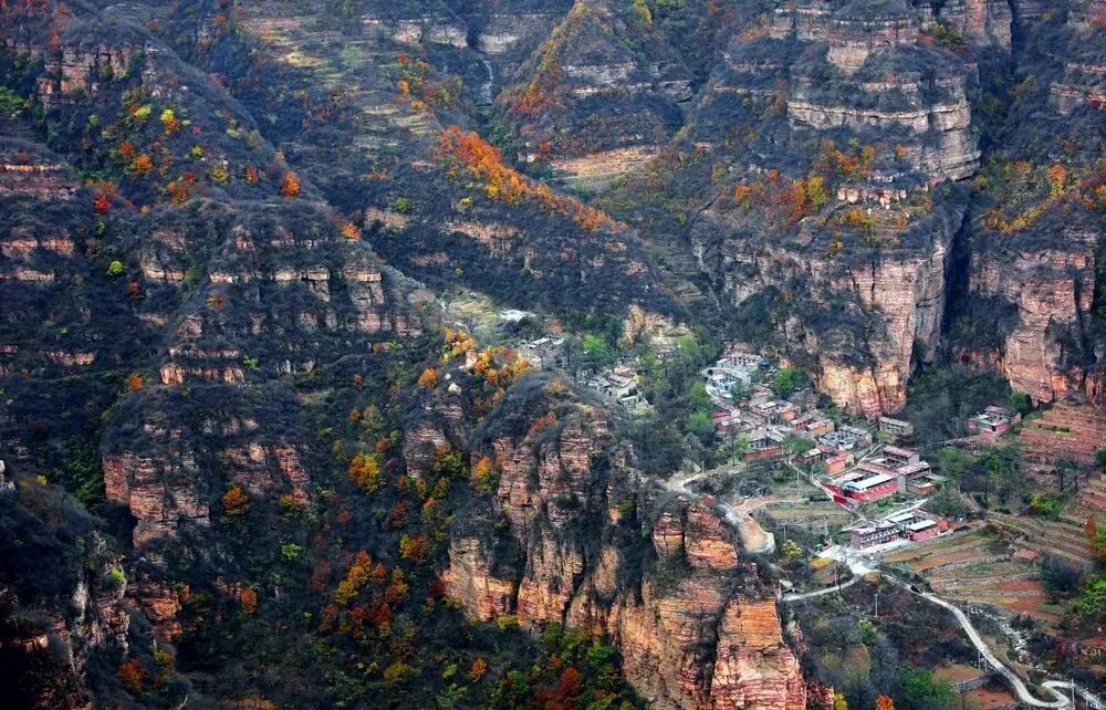 在落叶纷飞的秋日来到太行大峡谷,山崖为底,松桧为墨,登山的小路上总是充满惊喜,秋色浓郁,整座山都变了颜色,从山脚下的郁郁葱葱到山顶上的红黄相间,每一个台阶都浸染在了红叶的绚烂中。