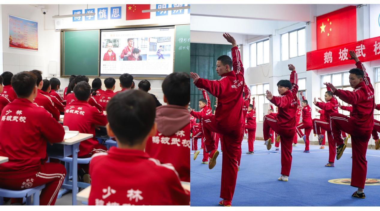 无论地域如何创新,总校登封市少林鹅坡武术学校的“以人为本,培养文武兼修之英才”始终是鹅坡教育的核心底色。学校坚持“以德塑人、以武育人、以文化人”的办学理念,让学生们在训练武术技能的同时,深耕文化课学习。即便是全运集训期间,文化课老师也全程跟队,利用训练间隙为学生们补课,确保“训练学习两不误”。这种“文武兼修”的培养模式,让鹅坡学生不仅能在舞台上发光,更能在人生赛道上走得更远。