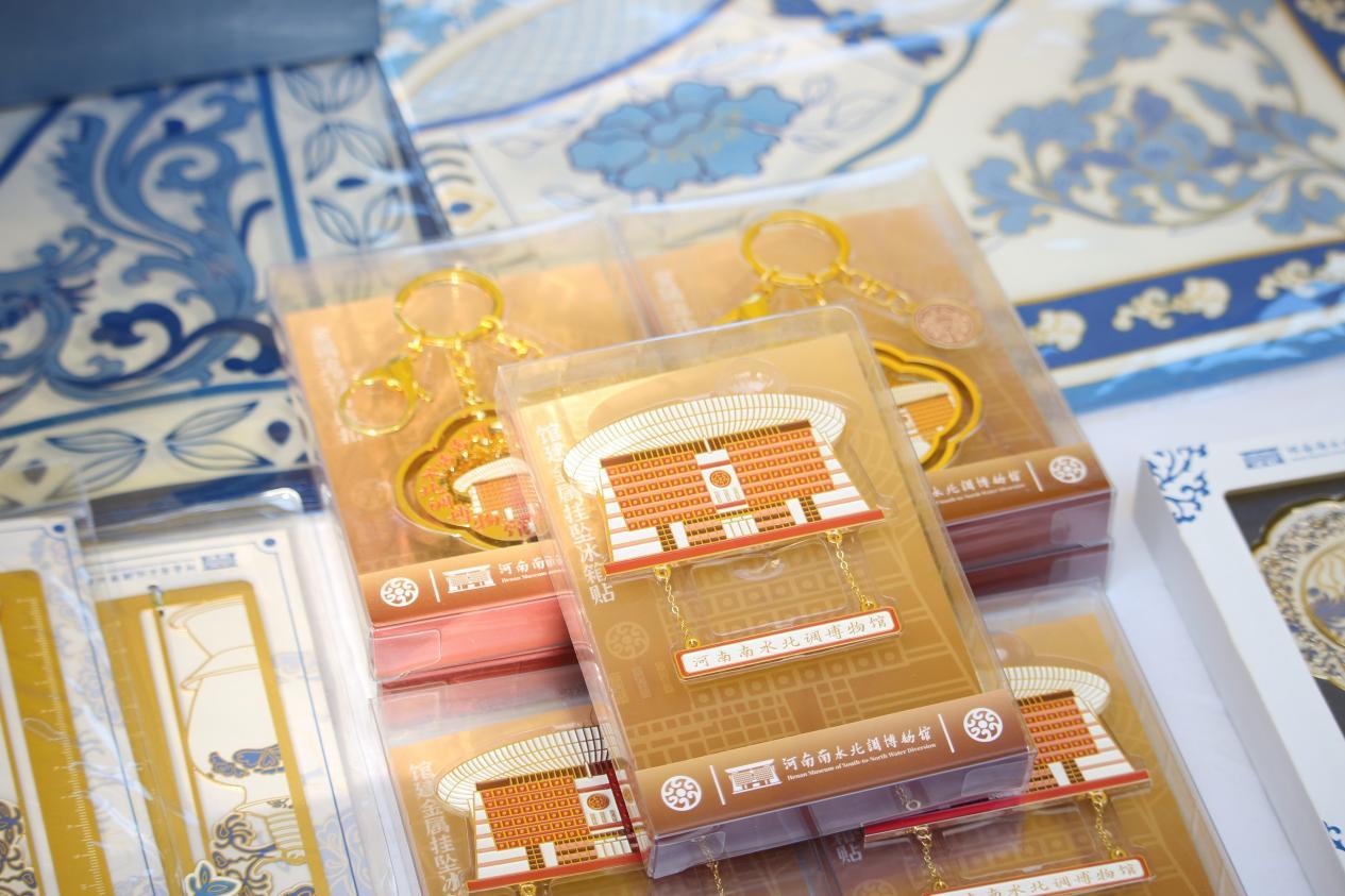 活动现场人气爆棚,如意湖文化广场处处洋溢着活力与创意的交融氛围。河南南水北调博物馆的展区格外吸睛,蓝黄相间的展棚设计亮眼,“河南南水北调博物馆”的标识醒目大气。展台上,各类文创产品琳琅满目,从唐青花塔形罐立体冰箱贴、挂件系列,到融合南水北调工程元素的创意周边,无不吸引着跑友和市民驻足观赏、打卡消费。其中,以唐青花塔形罐为原型开发的立体冰箱贴,将唐代青花的古朴雅致与现代文创的精巧设计完美结合,成为展区的“明星展品”,不少市民为其独特的艺术风格和文化内涵买单。