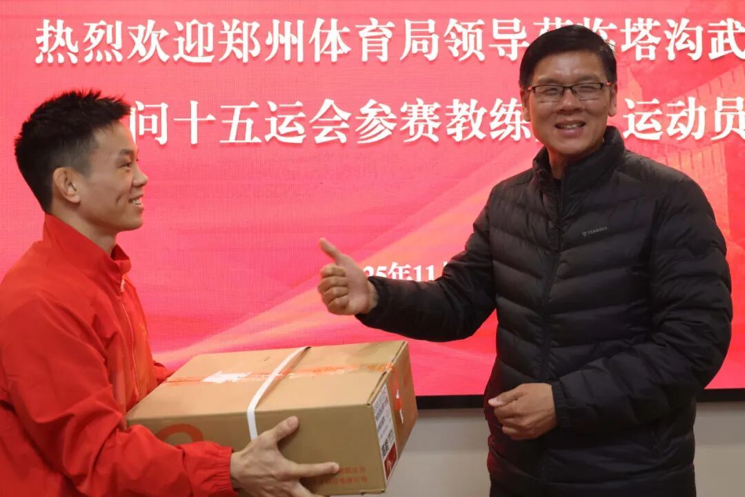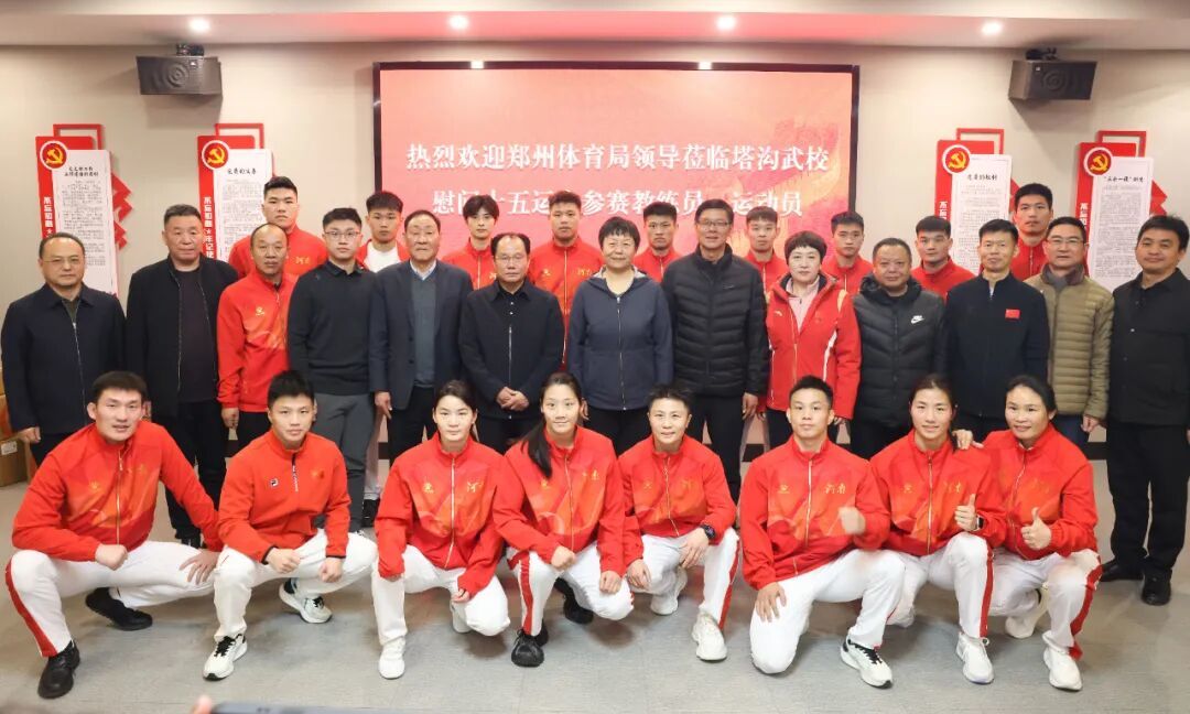 2025年11月23日上午,郑州市体育局党组书记、局长李雅,党组成员、副局长刘宁一行莅临塔沟武校,亲切慰问参加第十五届全国运动会的教练员与运动员。河南省散打队总教练、塔沟武校党委书记刘海科、武教处处长李占功、少林塔沟武术学校校长刘少云等校领导出席活动。