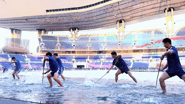 谭硕介绍,从接到任务到正式演出,他们每个人大约用坏了二十根棍。虽然这些棍法动作平时都有练习,但集体配合却颇具挑战。“只要有一个人失误,整体效果就会大打折扣。”为此,大家反复磨合队形,细抠劈棍、甩棍的每个细节。现场排练时,他们又遇到了新难题——表演需要在水中进行。“双脚长时间泡在水里,地面又湿又滑,站都站不稳,我们必须花更多力气去保持平衡,精神也得比平时更集中,每个动作都要用更大的劲儿。”当大家最终克服困难,整齐划一地挥棍击向水面,溅起阵阵水花的刹那,“那一刻,我们都觉得特别酷!”谭硕回忆道。