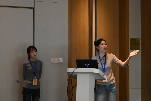 参赛学生吴依莲、王艺霏在决赛现场进行作品展示与答辩