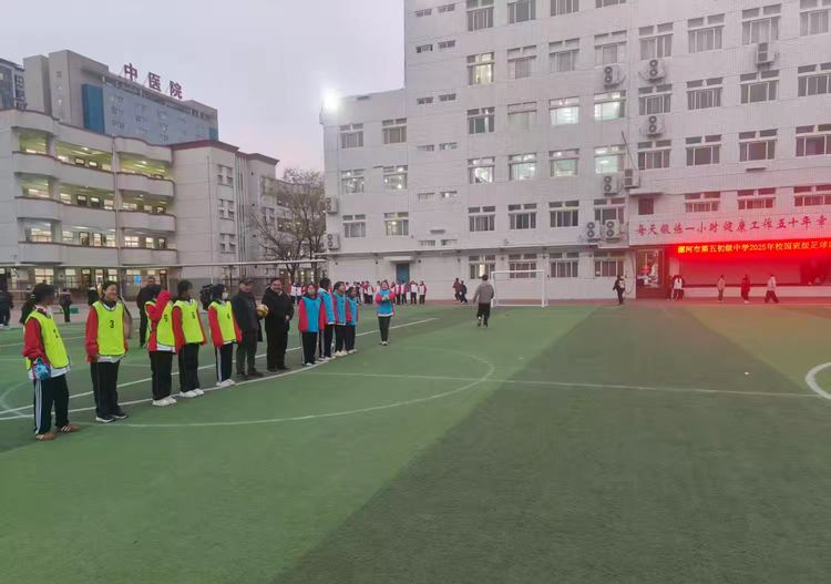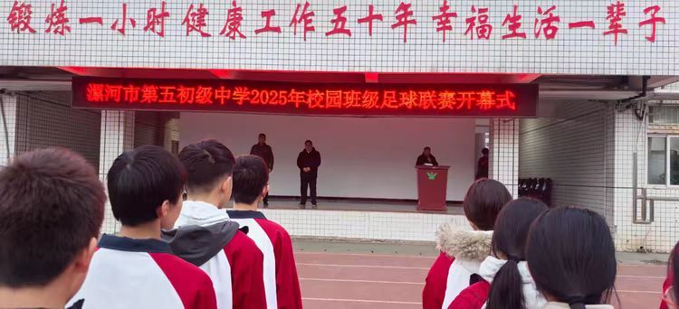 冬日寒风难掩青春热情。12月2日,漯河市第五初级中学操场气氛热烈,八年级全体师生齐聚于此,共同迎来了2025年冬季校园足球联赛的开幕式。