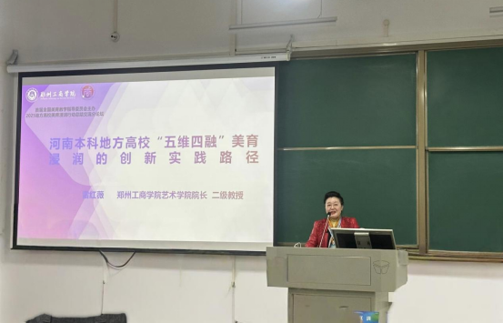 12月6日,2025地方高校美育教学工作交流与研讨会在郑州轻工业大学圆满闭幕。本次全面推动浸润行动落实,提高美育教育教学水平--地方高校美育教学工作交流与研讨会,由首届全国高校美育指导委员会主办,高校美育教指委是教育部聘请并领导的指导高等学校美育教学工作的专家组织,为地方高校美育浸润行动经验交流和美育课程教学示范展示搭建了平台,给予针对性指导,高校美育教指委主任委员高洪、副主任委员郭声健、杜卫、尹爱青和秘书长赵洪及20余位教指委专家参加活动并分别做了大会报告,主持人和评议人。河南省教育厅体卫艺处副处长李宗英、部分高校领导和全国500余名高校美育工作者,聚焦新时代美育浸润行动实践路径深化研讨。郑州工商学院应邀参会并在分会场作了系统呈现学校以八项行动为抓手、深耕“五维四融”美育模式的实践成果,彰显地方高校美育育人担当。