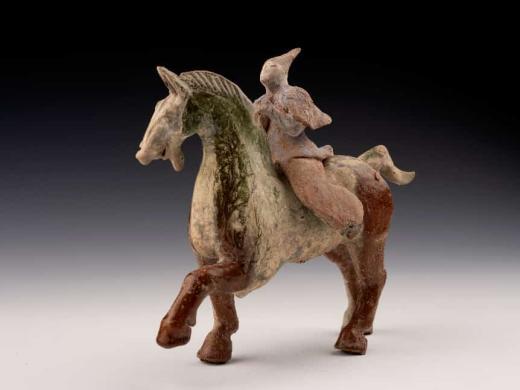 汉 褐绿釉马上羽人俑