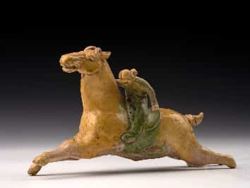 汉 绿釉勇士骑飞奔马俑