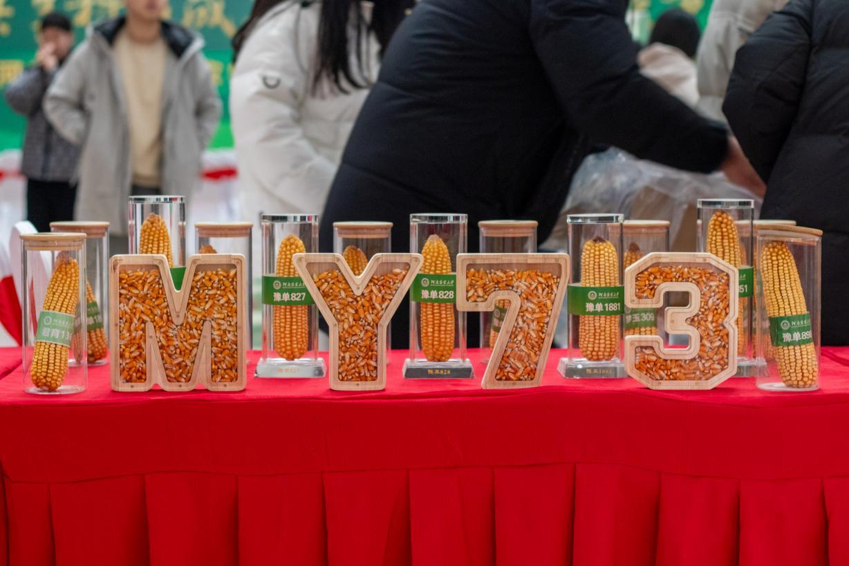 “这些产品都是用我们学校自己培育的品种制作的。”农学院陈锋院长介绍道,“比如玉米新品种‘MY73’,已成为当前全国推广面积最大的粮食作物品种。”