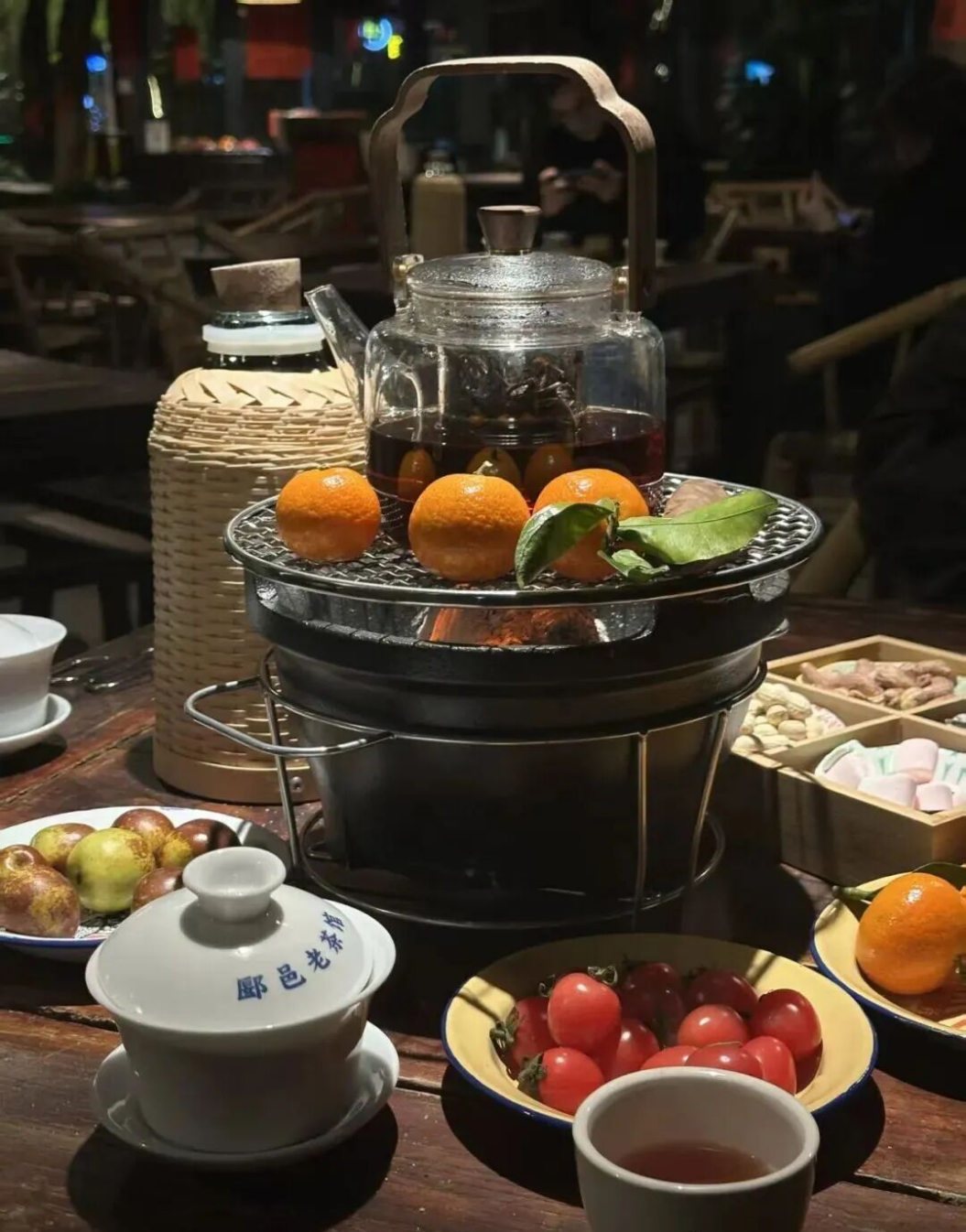 老张从不催客人点单,只慢悠悠夹来炭火,往炉子里添几块,火苗“噼啪”跳着,很快就把茶馆烘得满是暖意。围炉煮茶是招牌,他煮茶的法子却透着股执拗:用存放五年的老白茶,茶叶裹着淡陈香,投进透明玻璃壶,倒上沙澧河的纯净水,架在炉子上慢慢煮。水开的瞬间,茶香“嗡”地漫开来,先清冽草木香,再温润枣香,最后混着炭火暖意,钻得人鼻尖发痒。