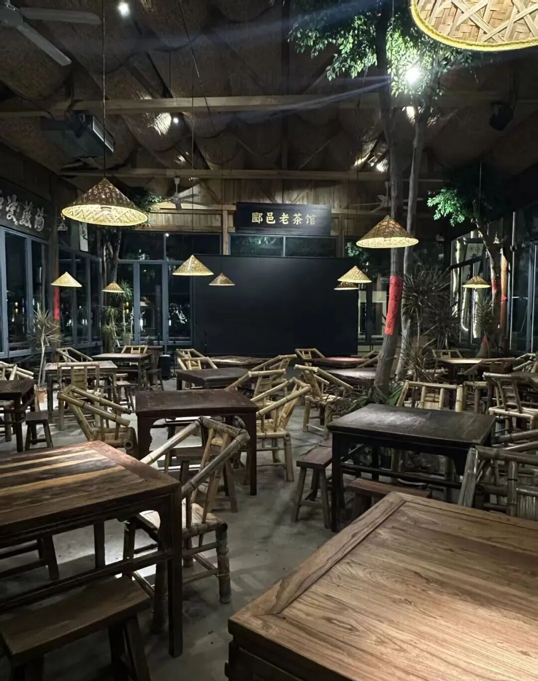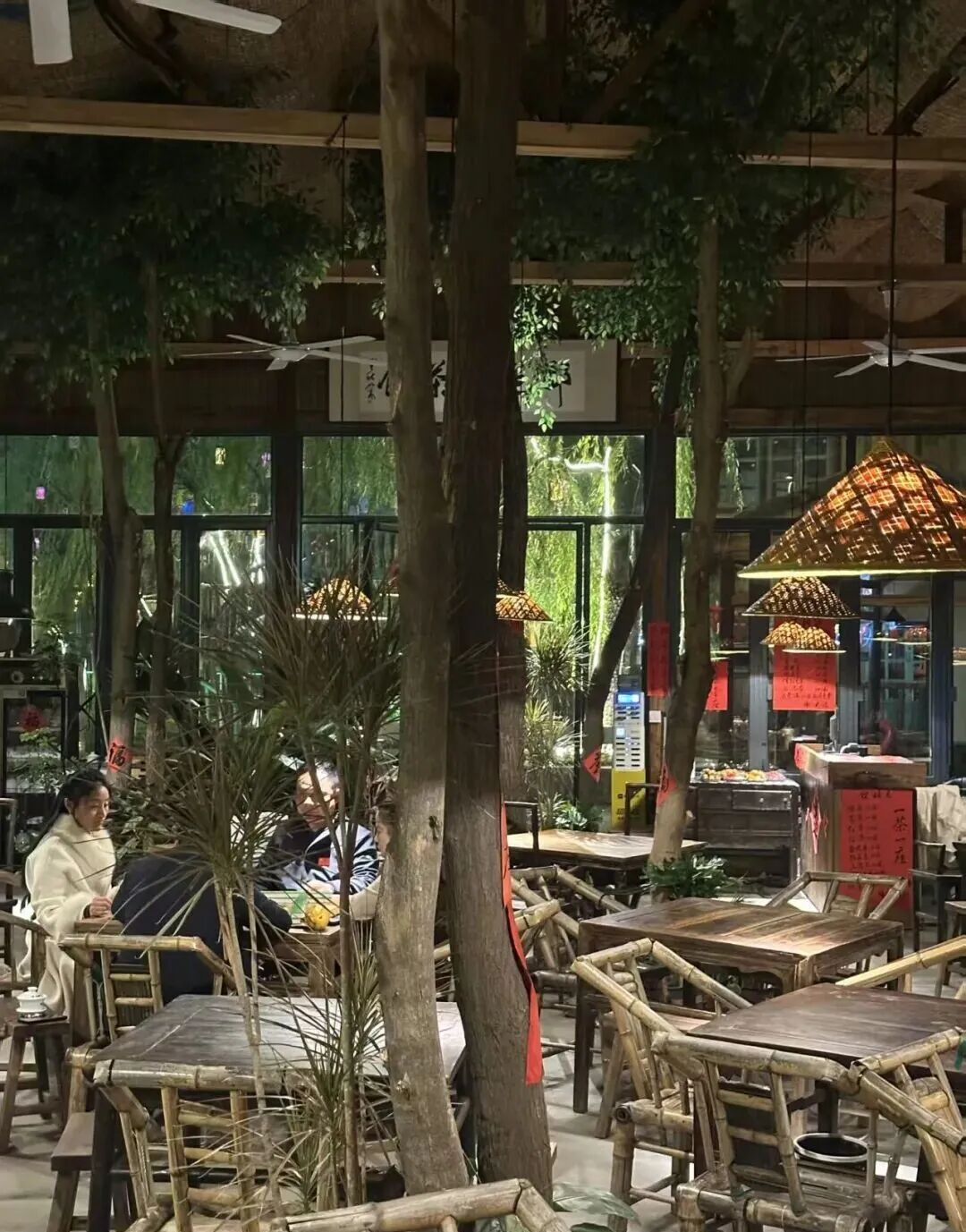 最打眼的是馆里二十张旧八仙桌,桌面磨得发亮,边缘还留着几处浅浅刻痕,老张说这是跑了好几个老村落收来的:“每道痕都是故事,比新桌子有温度。”冬天来的人,总爱围窗边的桌子坐,阳光会整整齐齐铺在桌面上,连空气都暖烘烘的。