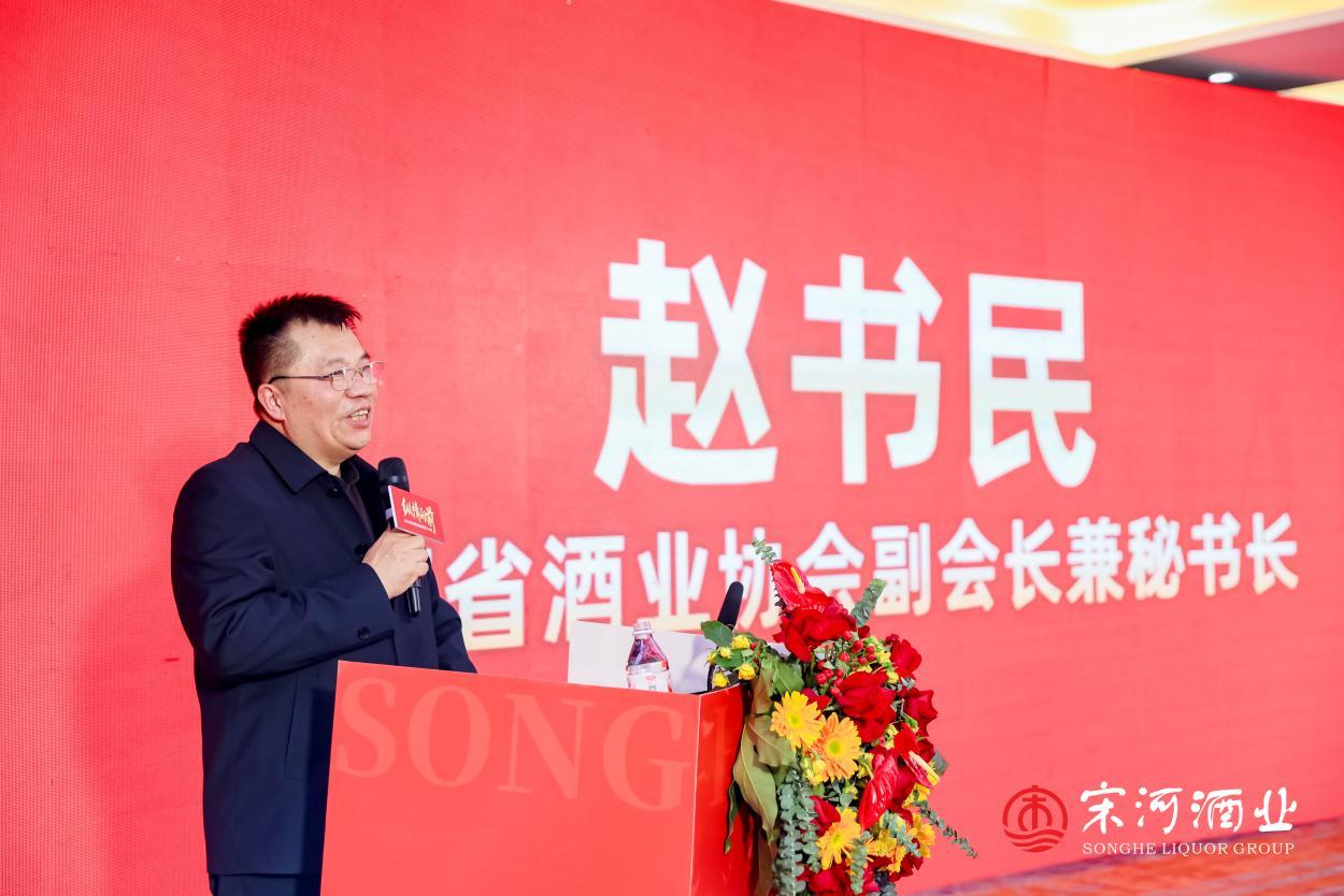 河南省酒业协会常务副会长兼秘书长赵书民在讲话中回顾了宋河的发展历程。他表示,今天是宋河自去年重整成功之后的首届年度经销商大会,这一刻意义重大。