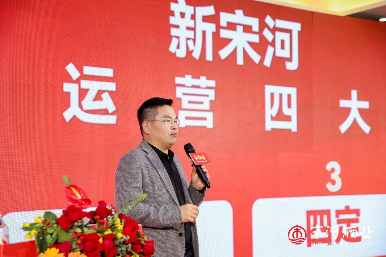 在此次活动现场,杨明超以“2026宋河的关键词”为主题,公开阐述了新宋河发展总战略,核心在于跳出传统白酒竞争逻辑,围绕“宋河酿好酒、让终端挣钱、消费者爱喝”,以“文化+场景”双轮驱动,通过可复制的“模式”实现市场突破。