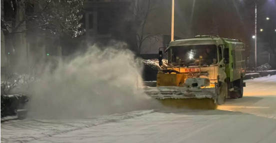 “冰雪混合、低温持续,我们不能停下清雪除冰的步骤。”市环卫中心机械车队队长郭建文说,“从1月19日凌晨至今,人歇车不歇,环卫机械清雪队两班倒持续清雪,白天仍将持续。”19日凌晨起,市区开始降雪,环卫人员立即行动,分班值守,专业力量顶风冒雪不间断对市区各主次干道、桥梁等巡查,重点清理桥面、陡坡、公交站台等易结冰关键区域,做到雪情隐患早发现、早处置;运用融雪剂精准抛洒作业,从源头防范路面结冰风险,形成“巡查-处置-反馈”的闭环工作机制,保障指令落地、专业力量响应高效。