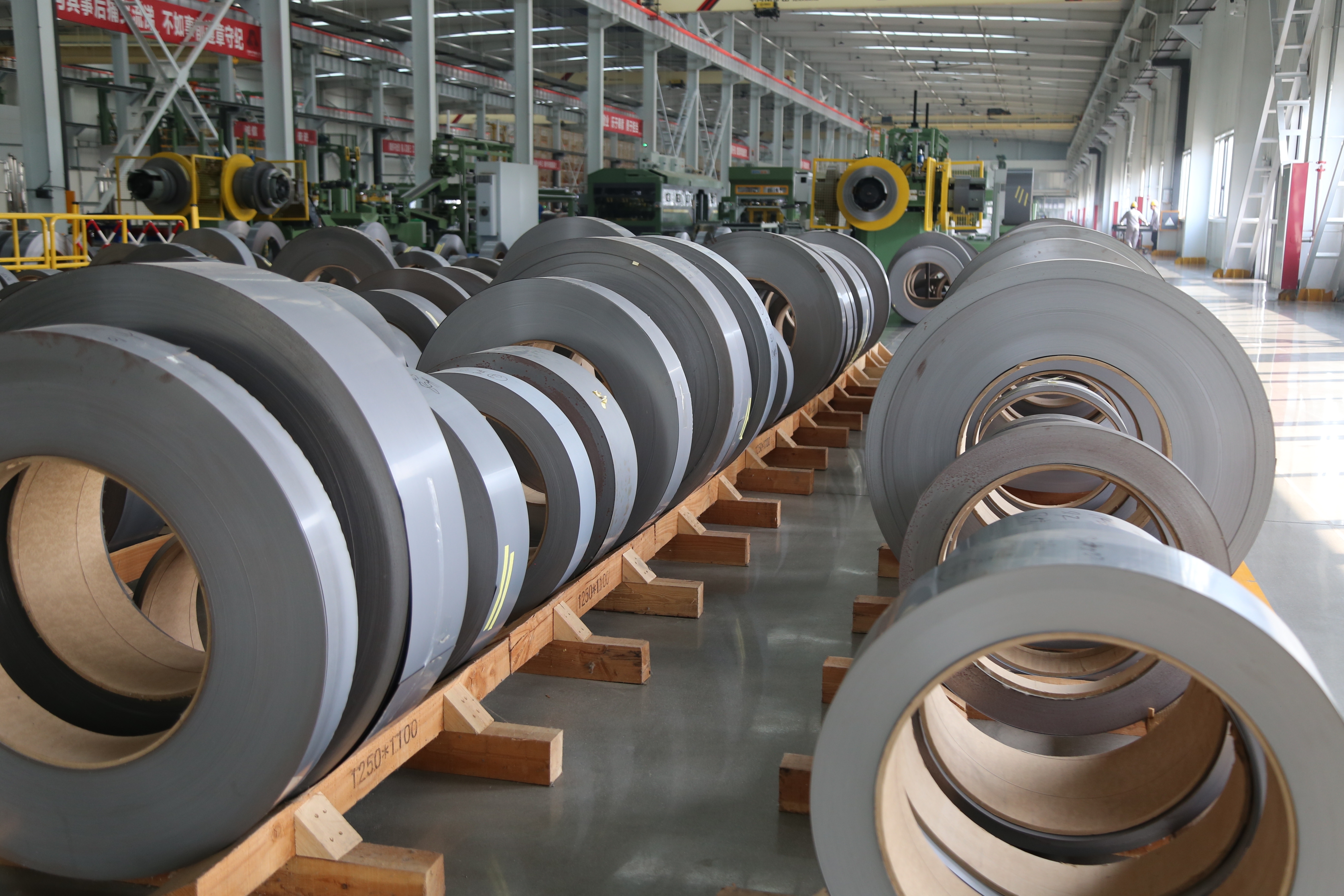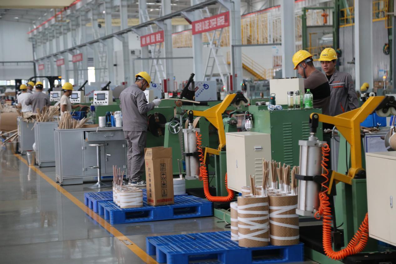 两万平方米的生产车间内,机器轰鸣,一卷卷如“大号胶带”的硅钢卷料经过自动化生产线裁剪、叠装成铁芯,一块块绝缘材料经过切割、去毛刺、倒圆角、防潮处理等流程进行精细处理,工人师傅熟练地操作变压器绕线机绕制线圈······车间内智能物流系统、智能吊装设备穿梭其间,将部件精准移送。经过一系列精密工序,一颗颗精密的“电力心脏”——电力变压器便在此诞生。
