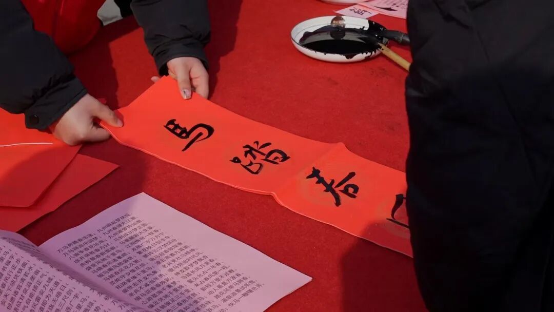 活动现场,群众层层环绕,或屏息观赏运笔之妙,或低声品评联语之趣。孩童踮脚张望,眼中满是新奇;长者含笑颔首,神情欣慰慈祥。当带着温润墨香的春联被郑重递到手中,乡亲们连声道谢,笑容如春阳般灿烂。这红纸黑字,传递着浓浓的年味,更在笔墨流转间连缀起文化的记忆与情感的纽带。