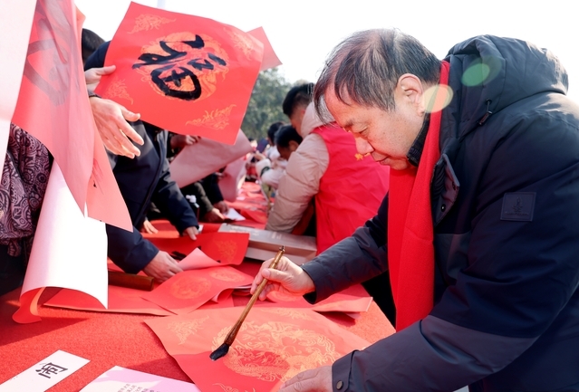 吴行表示,书法作为中华优秀传统文化的瑰宝,承载着民族精神密码与审美理想,春联与 “福”字更是连接家国情怀与民心期盼的文化纽带。百名书家义务挥毫,既是书法艺术回归人民、反哺生活的生动实践,也是凝聚文化认同、推动文化繁荣的具体行动,与郸城人民勤劳质朴、奋发进取的品质高度契合,将为乡村振兴注入强劲文化动能。