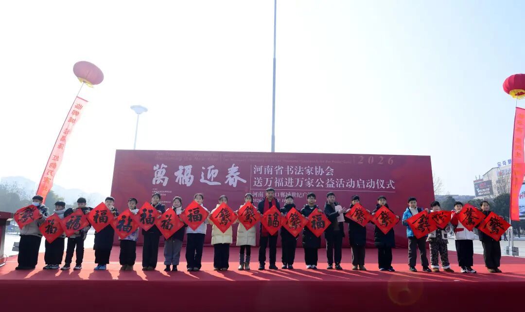 1月24日上午,按照中国书法家协会统一安排部署,“万福迎春——2026年河南省书法家协会送万福进万家公益活动”启动仪式在周口郸城世纪广场举行。