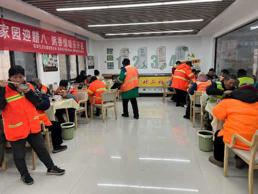 活动现场,暖意融融,空气中弥漫着腊八粥的香甜气息。社区餐厅工作人员提前筹备,精心熬煮数小时,热气腾腾的腊八粥盛在碗中。环卫工人们捧着粥碗细细品尝,眉眼间满是幸福。