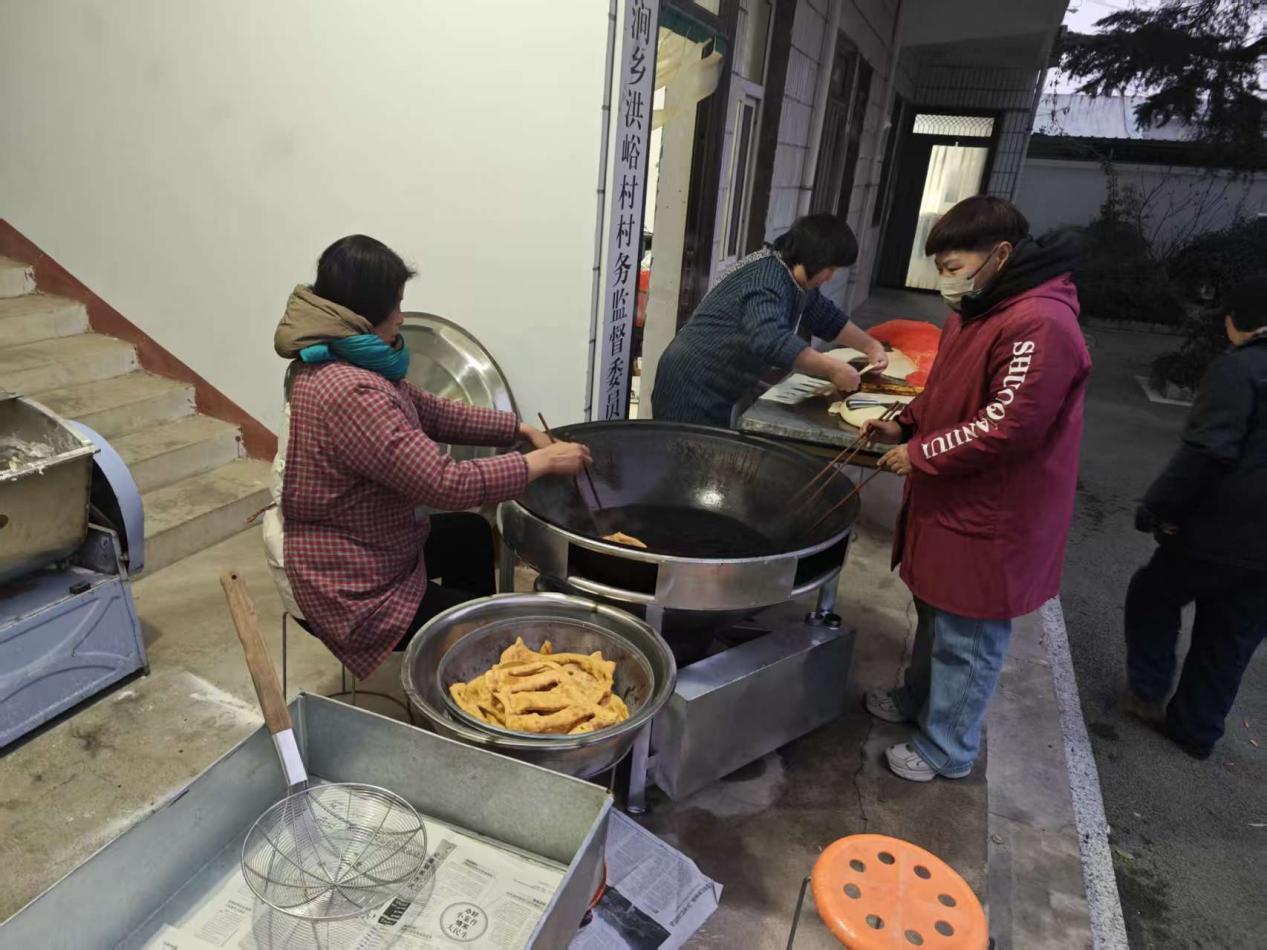 为了办好这次活动,村两委和志愿者们凌晨四点就开始忙碌。他们精心挑选了糯米、红豆、红枣、花生等八样食材,用柴火慢熬,确保粥品稠糯香甜。一旁现炸的油条外酥里嫩,与腊八粥是村民们心中的“最佳搭配”。