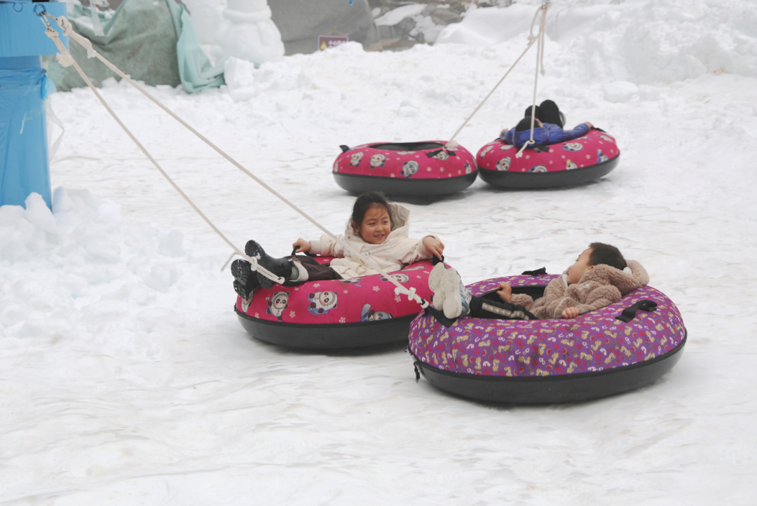 雪圈、雪地滑梯随便玩,小朋友追着雪花奔跑