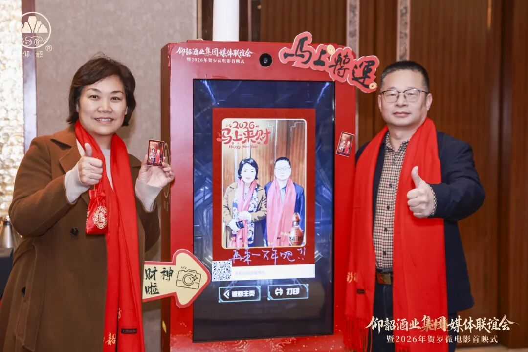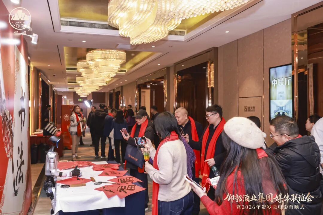 现场布置年味浓厚,互动环节精彩纷呈。入口处,机器人手臂挥毫书写"福"字,科技与传统交融,吸引嘉宾纷纷驻足;创意调酒区,调酒师以仰韶美酒为基,精心调制出一杯杯寓意吉祥的节日特饮,光影流转间散发迷人魅力;AI冰箱贴拍照机前更是笑语不断,嘉宾们即拍即得,留下了一张张满载活动记忆的喜庆瞬间。这些精心设置的环节,营造出温暖愉悦、氛围感十足的交流场景,为首映礼增添了浓墨重彩的愉悦一笔。