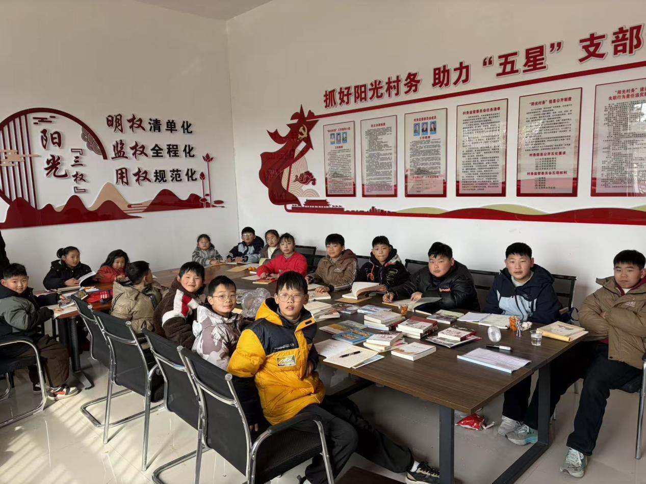 培训班充分利用农家书屋阵地资源,采取“上午作业辅导+下午素养提升”模式。每天上午,大学生志愿者耐心指导孩子们完成寒假作业,答疑解惑;下午则开展共读分享会。为丰富阅读资源,黄金龙专程从老窝镇农家中心书屋借阅了百余册文学名著,鼓励孩子们沉浸阅读、主动思考。在“我是小小讲书人”环节,学生们踊跃上台,将《西游记》《草房子》等书中的精彩片段娓娓道来,分享阅读感悟。黄金龙还为孩子们讲述了近代史故事,并结合名著《平凡的世界》,引导大家感悟奋斗精神、厚植家国情怀。