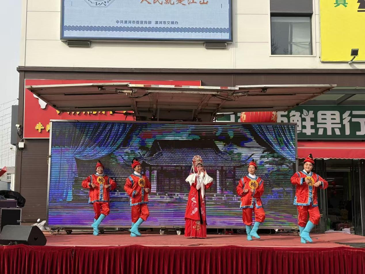 活动当天,解放路智慧农贸市场广场门前锣鼓喧天、歌舞欢腾,经典戏曲《花打朝》《抬花轿》《包青天》选段轮番登台,赢得台下阵阵喝彩,精彩的变脸节目更是将现场氛围推向高潮,现场掌声、欢呼声此起彼伏。市场内,红灯笼、喜庆条幅……浓浓的年味儿扑面而来,生鲜果蔬、肉蛋粮油、年货好物琳琅满目,往来市民络绎不绝,挑选、称重、付款,每个人的脸上都洋溢着购物的喜悦。“这次年货节,不仅买到了实惠的年货,感受到了浓浓的年味儿,还看了精彩的演出,太开心了!”家住天桥街的高阿姨提着满满两大袋年货,脸上满是笑容。