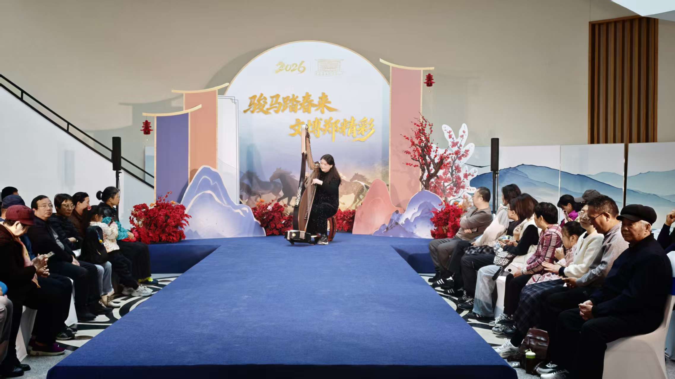 上午10时,悠扬的箜篌乐声准时在三楼展厅响起,拉开了当天活动的序幕。这场“非遗展演”邀请了箜篌演奏非物质文化遗产代表性传承人现场演绎。演奏家以精湛的技艺拨动琴弦,一曲曲或空灵、或激昂的古典名曲在博物馆空间内回荡,让在场观众在浓厚的年节氛围中,近距离感受到了中华传统音乐的深邃魅力与独特韵味。