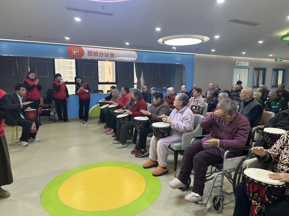 在文化关怀板块,支行员工精心准备了丰富多彩的互动节目。铿锵有力的鼓声拉开了活动序幕,激昂的节奏瞬间点燃了现场气氛,激昂的鼓点与欢声笑语交织成温暖画卷。活动尾声,工作人员将精心准备的慰问品送至每位长者手中,现场洋溢着浓浓的温情氛围。