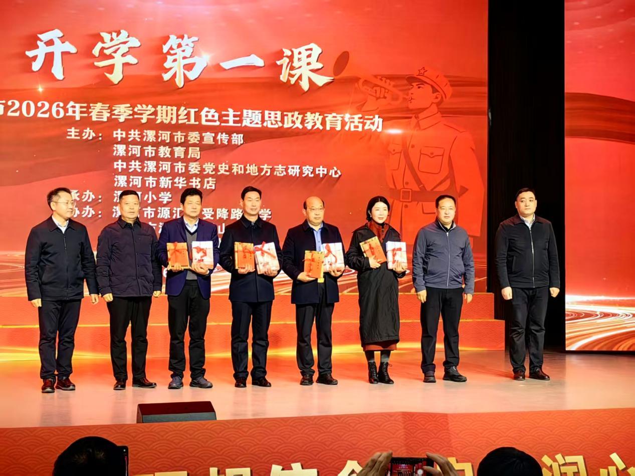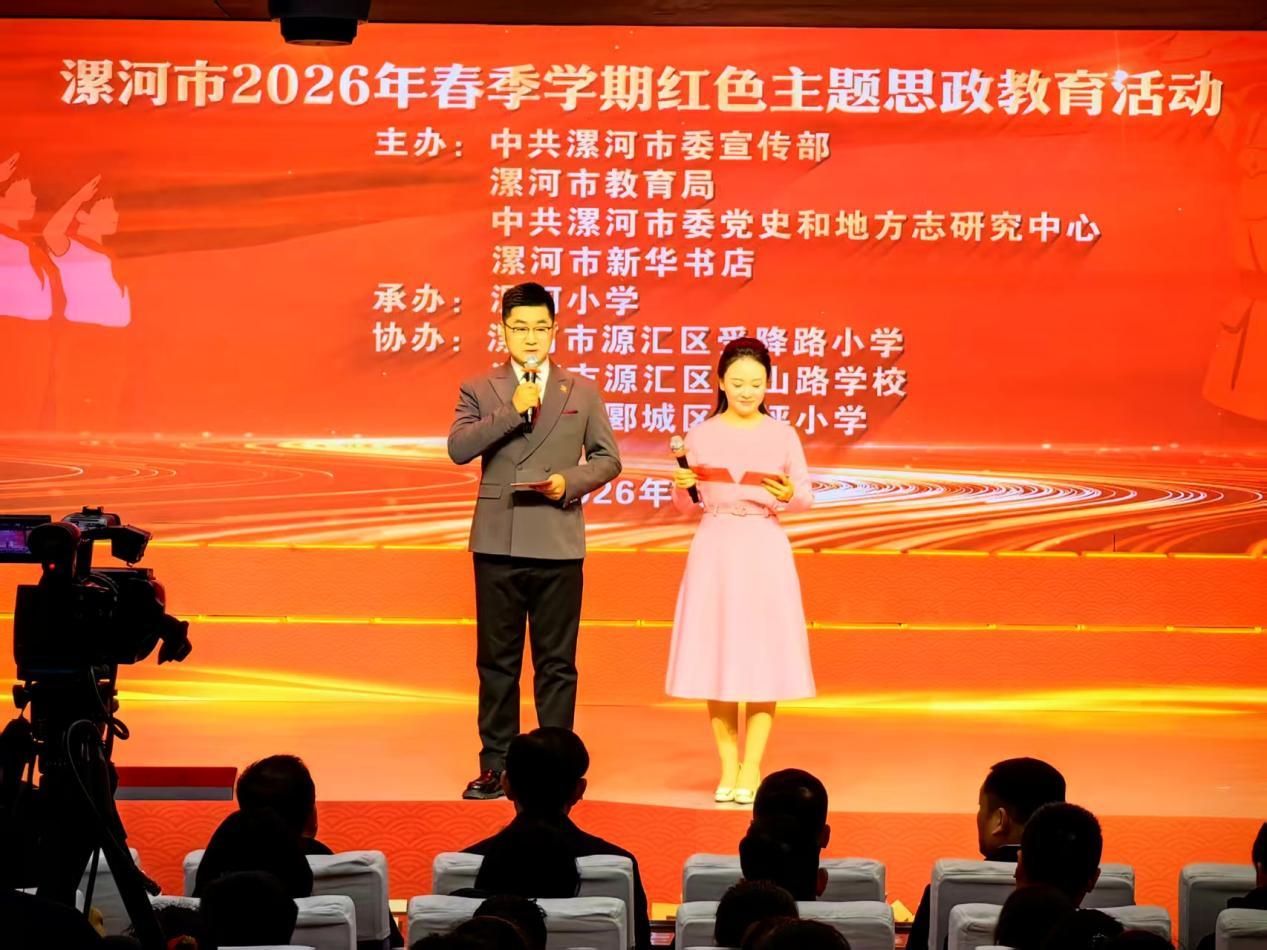 3月6日上午,漯河市2026年春季学期“开学第一课”红色主题思政教育活动在漯河小学礼堂举行。市委常委、宣传部部长、市委教育工委书记马明超出席并致辞。市委宣传部常务副部长李玉杰、市委宣传部副部长朱文超,市教育局党组书记、局长王海东,市教育局党组成员、副局长聂广桥,市新华书店总经理宋化勇参加活动。