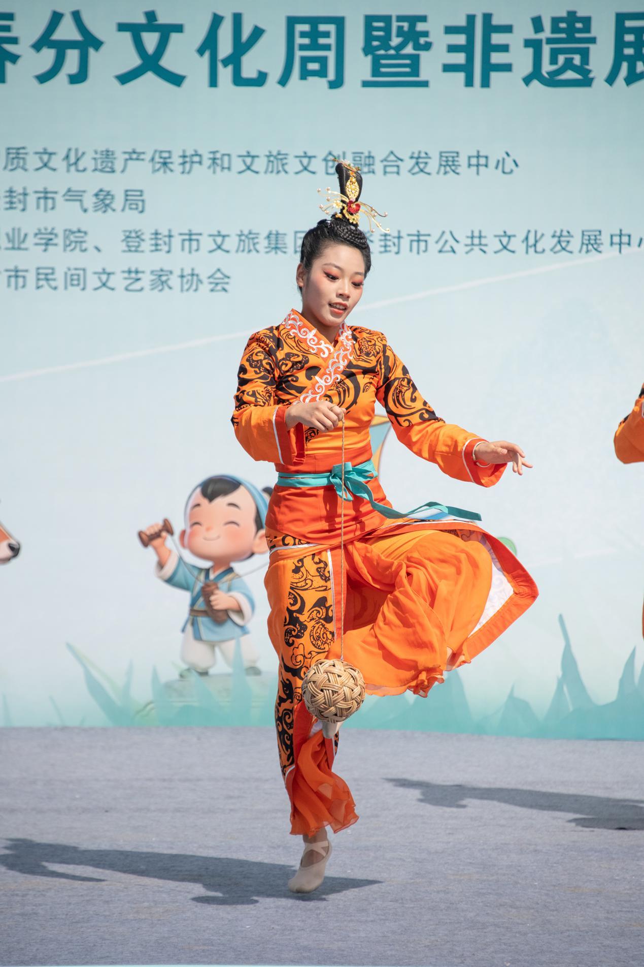 在文艺展演环节,传统与现代实现跨越时空的对话。一边是《女子蹴鞠图》再现古代蹴鞠的灵动身姿,与现代足球少年的活力身影相映成趣,别有意蕴;另一边,由牛青栏、杨庆林等艺术家带来的河南坠子创新演绎,将传统曲艺与现代摇滚音乐巧妙融合,使古老唱腔在电吉他的律动中焕发出新活力、迸发出新魅力。来自河南工业大学、河南农业大学等高校的师生们也现身活动现场,一起走进这春天的画卷,在嵩山脚下、颍水之畔,齐声诵读中华经典诗词,推动优秀传统文化代代绵延、文脉赓续。