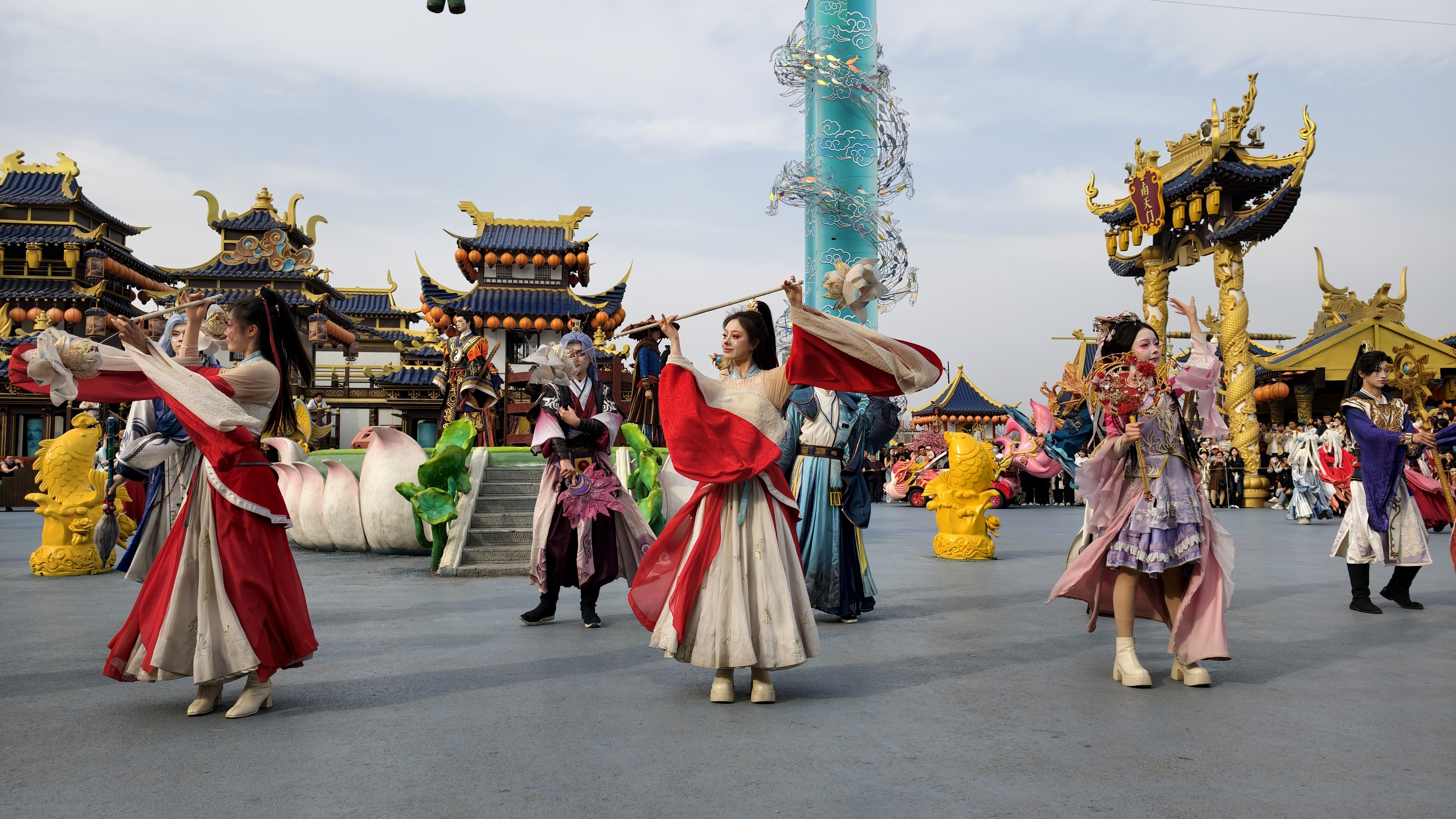 “嚯!这哪是景区,分明是真真切切的江湖!”第一次走进万岁山武侠城的游客,几乎都会发出这样的惊叹。丐帮弟子擦肩而过,客栈里江湖豪客大快朵颐,街角时不时上演一场比武招亲……这并非影视城片场,而是这座“中式武侠乐园”的日常。
