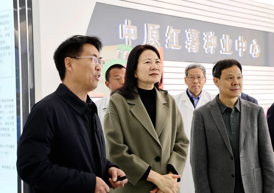 霍金花一行前往中原红薯种业中心、瑞金电子科技有限公司,实地考察红薯脱毒育苗、智能化管理及产业链延伸情况,详细了解企业生产经营、技术创新及市场拓展情况。