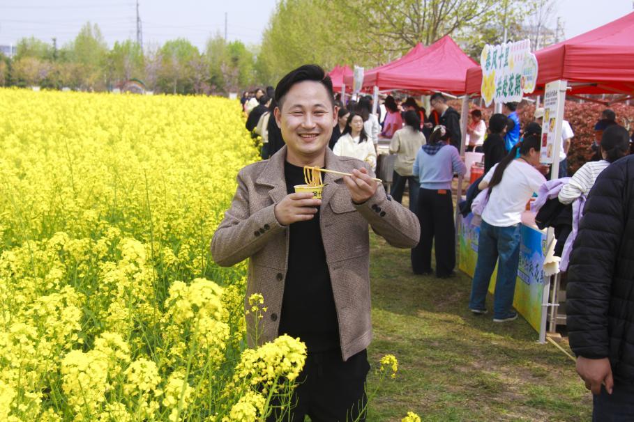 在隆重的开幕仪式之外,活动现场还精心设置了多元互动体验区域。美食市集汇聚各类春日“河南特色”小吃,蒸野菜、榆钱窝窝香气扑鼻,满足嘉宾们的味蕾需求;趣味活动区欢声笑语不断,各类互动游戏拉近了彼此的距离;汉服体验区则为活动增添了一抹古典韵味,嘉宾们身着雅致汉服,在花海旁打卡留念,感受传统文化与春日美景的完美融合。