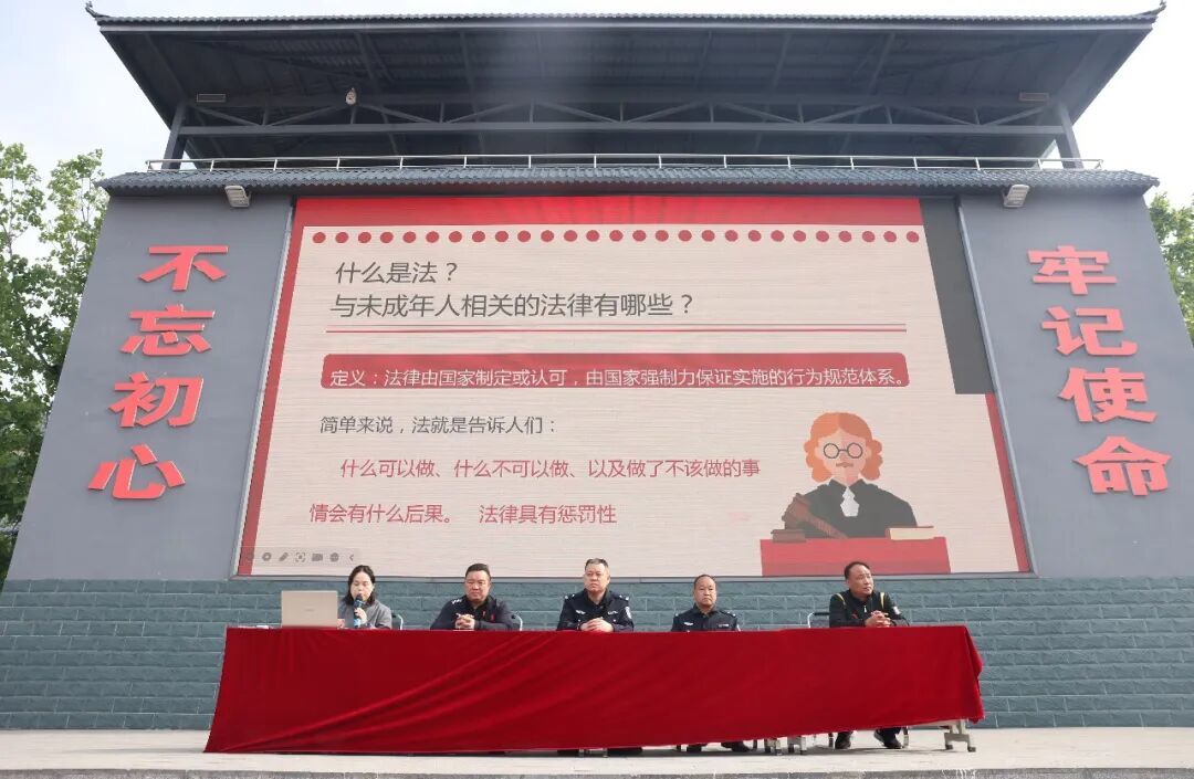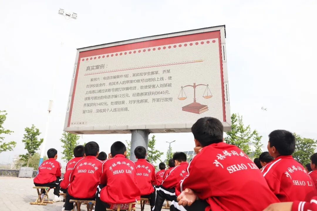4月15日是第十一个全民国家安全教育日,为进一步增强未成年人法治观念,提升自我保护意识,登封市公安局武术学校治安维护科李建阳警官、蒋晓丽警官走进塔沟教育集团,在大禹校区五环演武场为塔沟武校、少林中专的学子们带来了一场以 “守规则,护成长” 为主题的未成年人法制宣传教育警示课。塔沟武校法治副校长郭京伟、安全信访副校长张兵利和少林中专安全信访副校长张迎军以及万余名师生参加了本次活动。