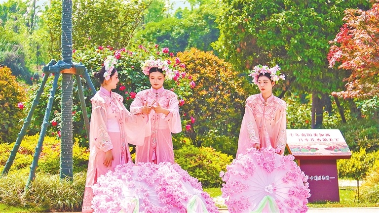 4月23日,位于南阳市卧龙区的中国月季园里,2000多个品种的月季渐次开放,吸引全国各地游客前往打卡留念。王小军 摄